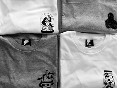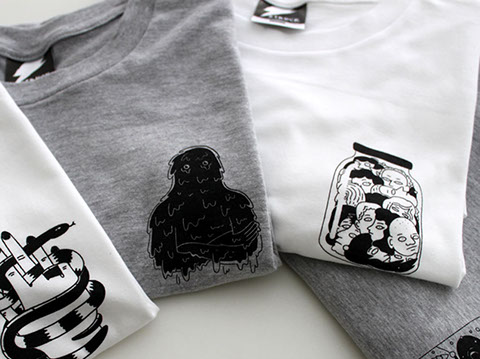 Graphic designer/illustrator Annika Brandow went with a classy heart logo only on white and melange crew neck t-shirts. Printed with black water-based ink.
