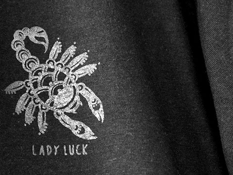 The scorpion was printed in a black plastisol, only visible by how the light refracts from the surface of the cured ink.
