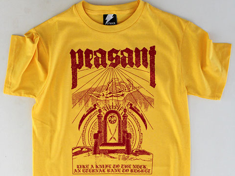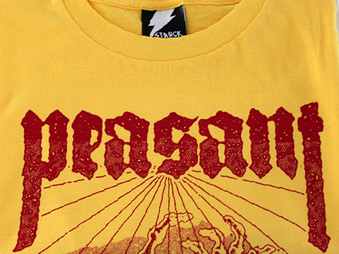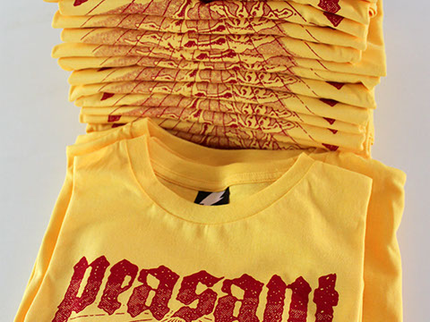 The Cape Town hardcore band got in contact with us to print some of their new album's merchandise. This here is our standard "Hazard Yellow" crew neck t-shirts. The high detailed print was inked with a custom water-based maroon ink.