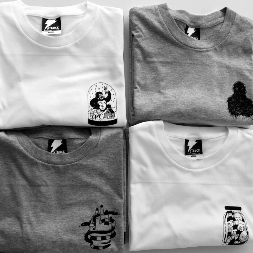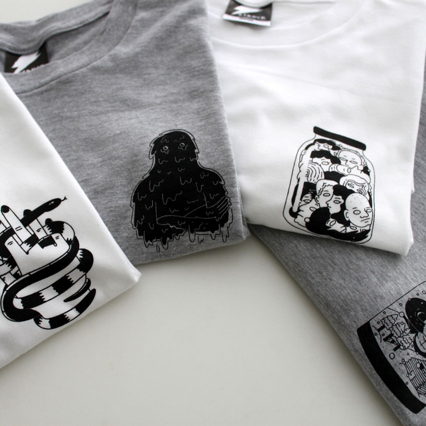 Graphic designer/illustrator Annika Brandow went with a classy heart logo only on white and melange crew neck t-shirts. Printed with black water-based ink.