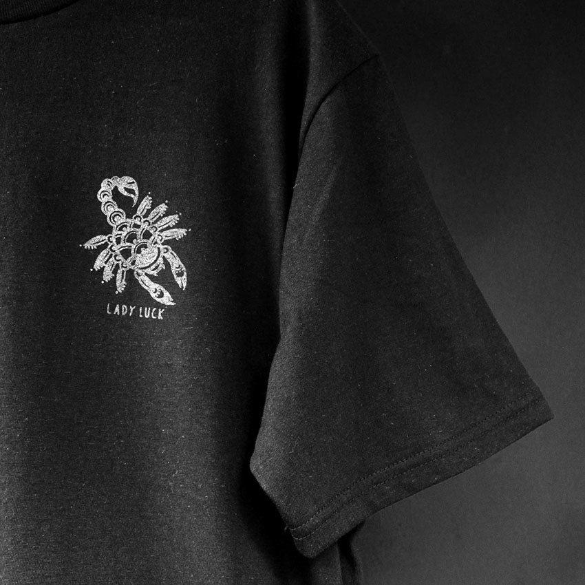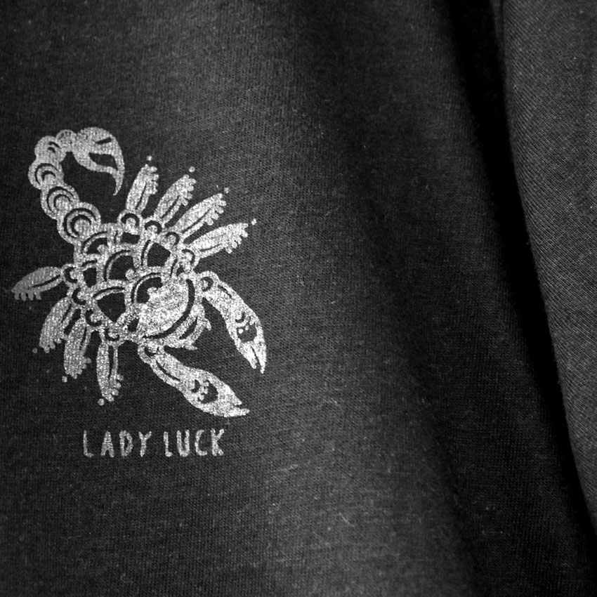 Lady Luck got this scorpion as a print on the heart only.
