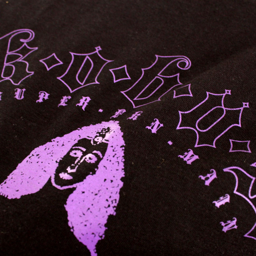 Such a rad t-shirt! Permanent Record got us doing this for K.O.B.U.S and it came out so dope! Permanent record wanted custom plastisol purple on purple