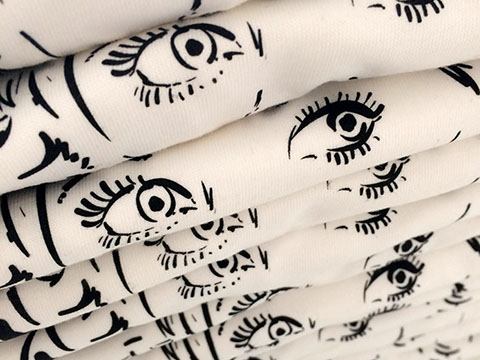 water-based ink on crisp white t-shirts. The result is this soft and comfortable merch!